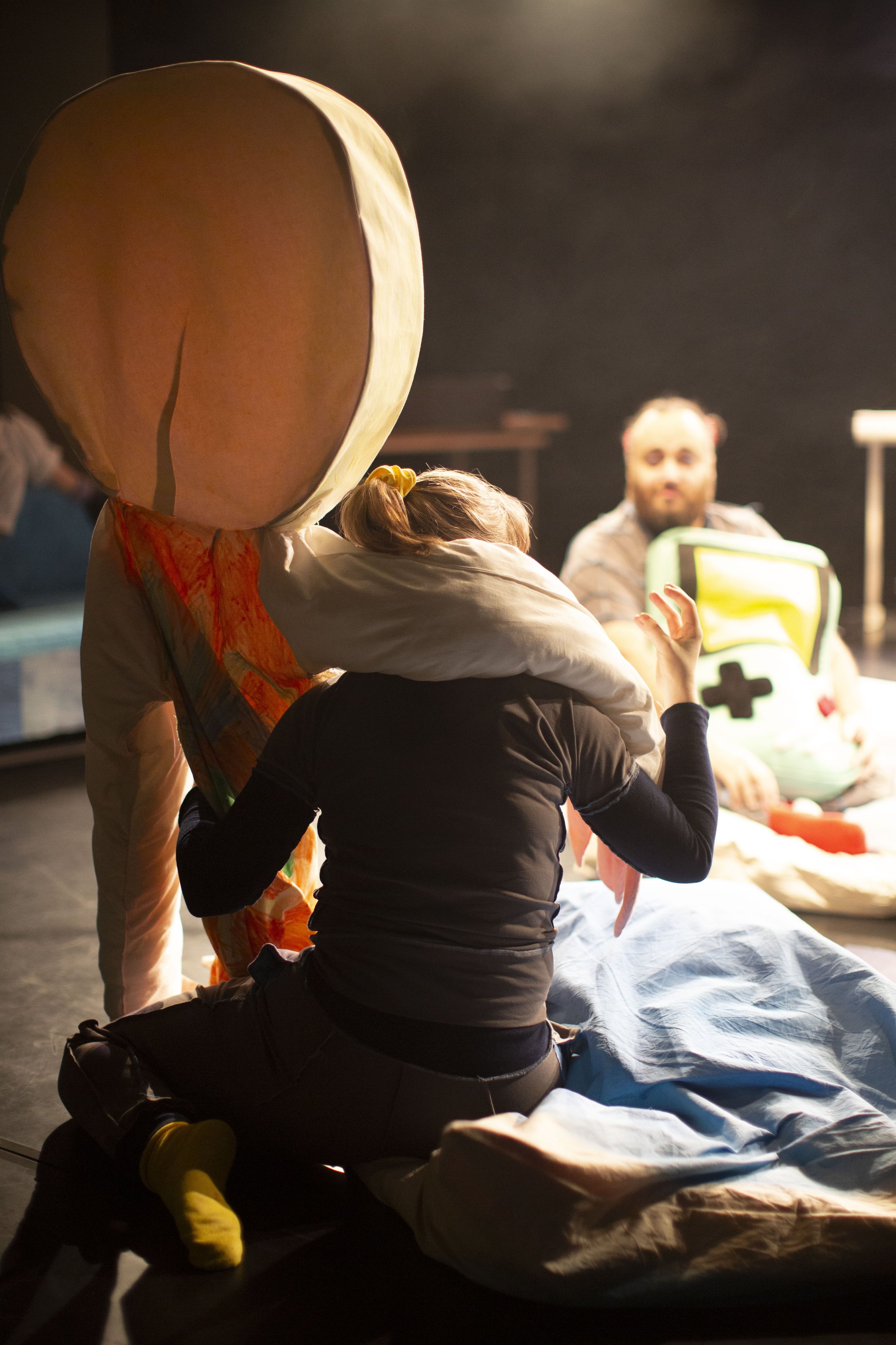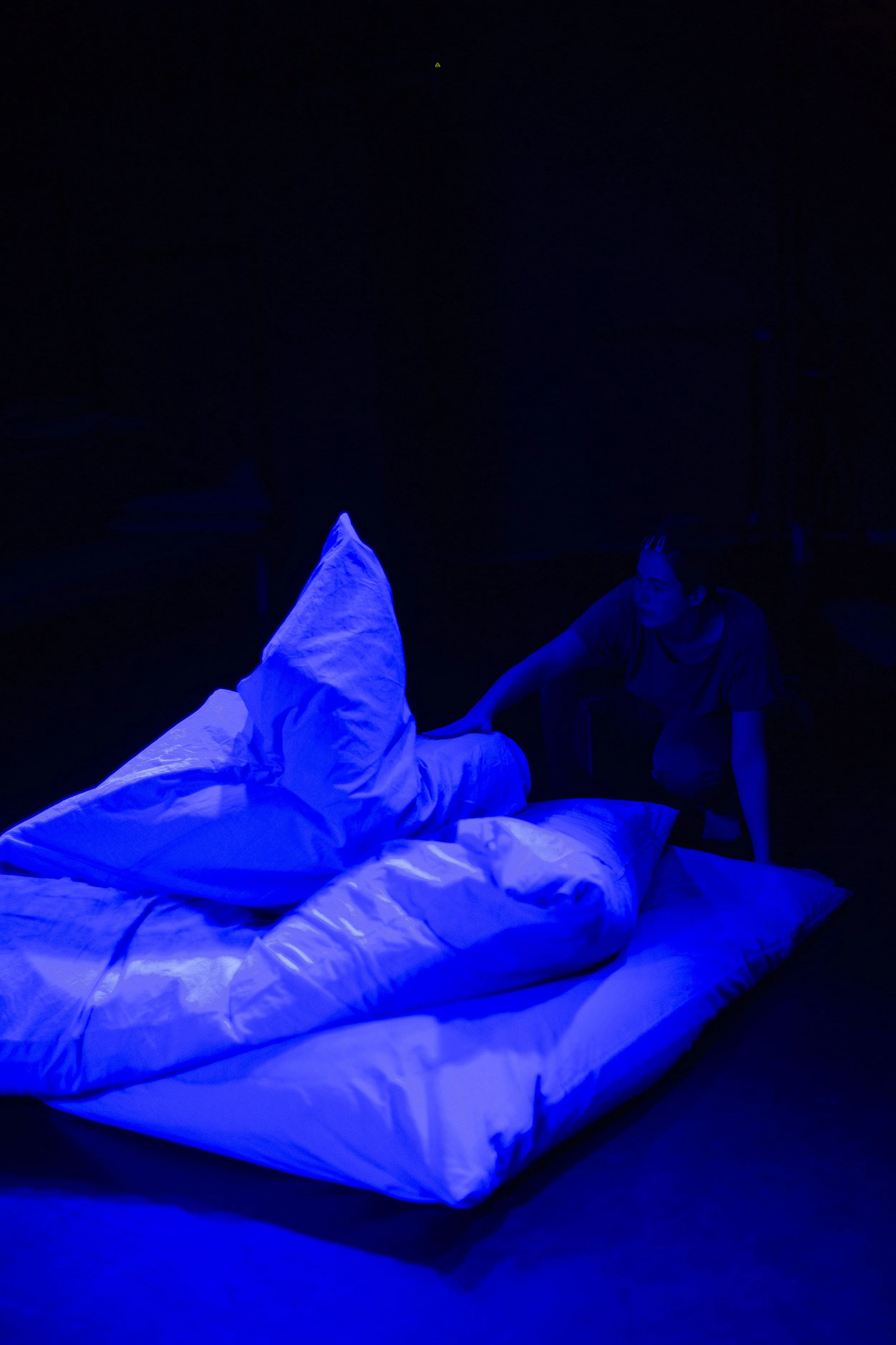 Was tut dir gut und versöhnt dich mit deiner Traurigkeit? Eine Umarmung, an Blumen riechen oder mit anderen spielen? Gemeinsam mit dem Publikum halten Indigo, Nebi und Azraa den besten Umgang mit der Traurigkeit auf ganz viel Blau fest. Dabei entsteht: Eine praktische Blaupause für die tägliche Zuflucht.